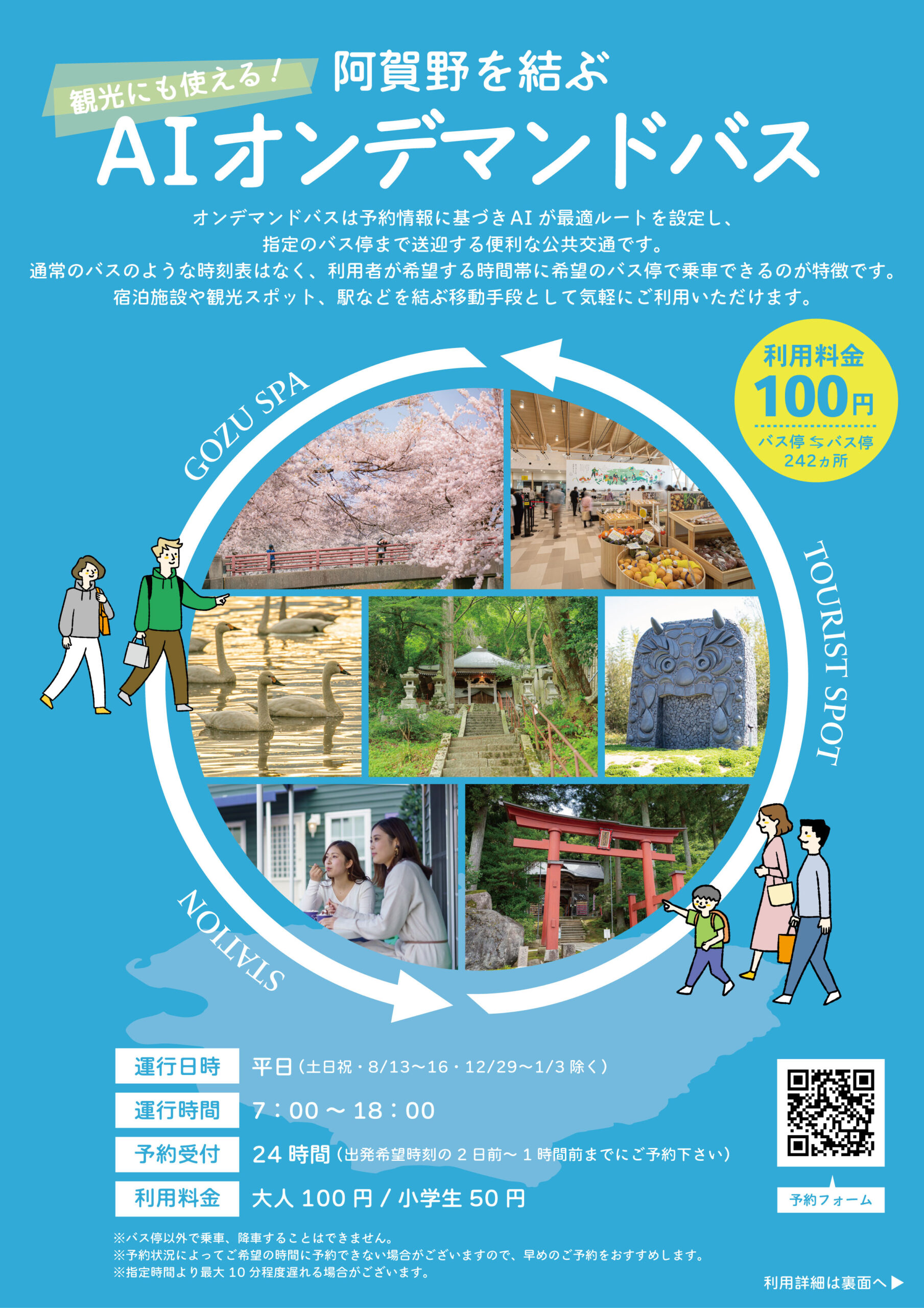 通常のバスのような時刻表はなく、利用者の希望時間に合わせて運行するのが特徴です。